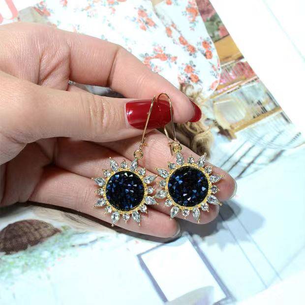 新款简约水晶太阳花耳环韩国个性百搭冷淡风网红气质长款耳钉耳坠