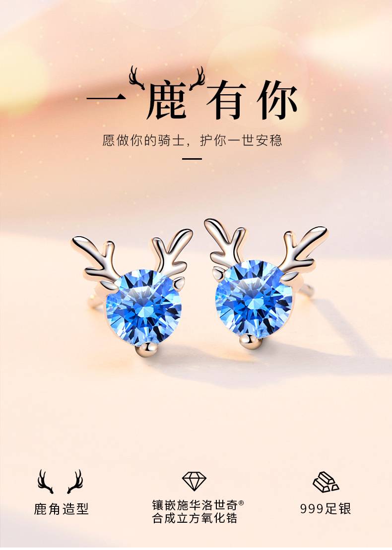 一路鹿有你耳钉女纯银圣诞礼物耳饰镶施华洛世奇锆2019新款潮耳环