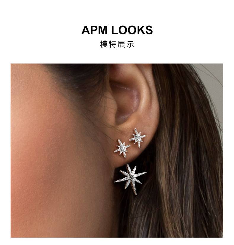 APM Monaco六芒星耳钉不对称流星欧美耳环女长款时尚星星耳饰银