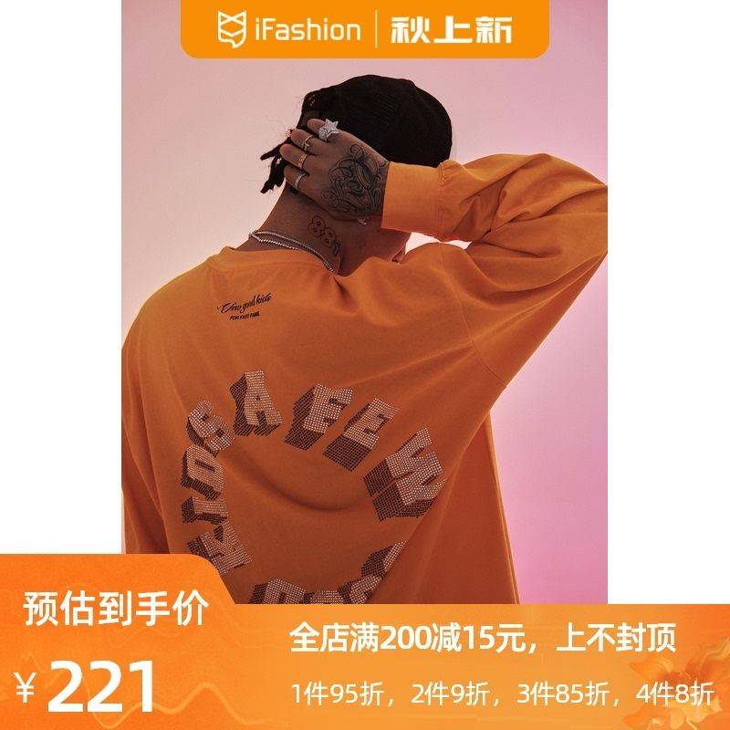 FFF马思唯联名AFGK烫钻卫衣男afewgoodkids橙色上衣国潮长袖TEE