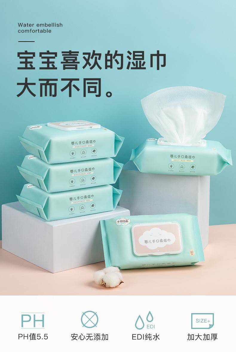 十月结晶婴幼儿湿纸巾新生儿手口清洁专用带盖湿纸巾80抽正品包邮