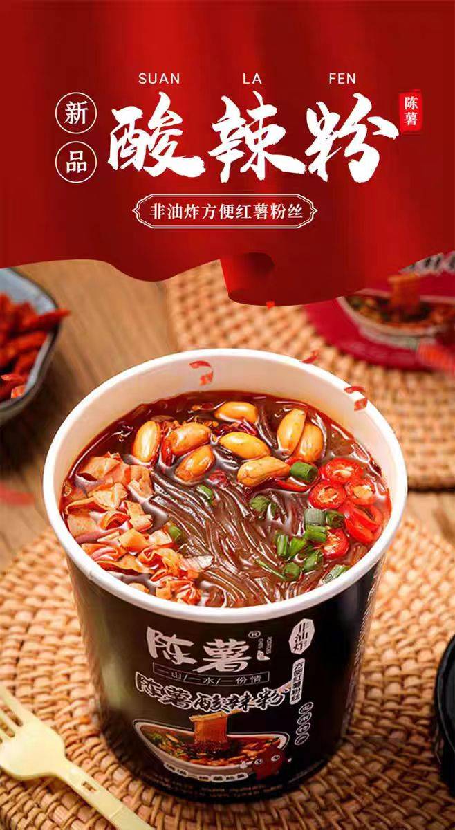 陈薯黑金版酸辣细粉126.5g*桶正宗纯红薯粉丝免煮冲泡速食宵夜