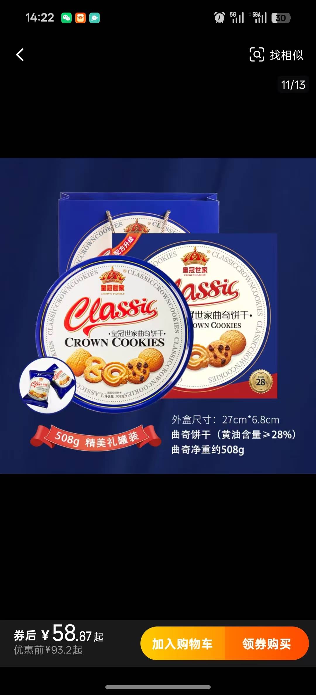 Danisa皇冠丹麦曲奇饼干72克进口黄油曲奇礼盒送礼节日精选礼品