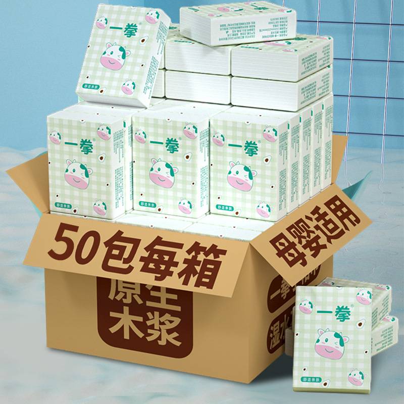 沐韵水滴子40包整箱原生木浆餐巾纸纸巾抽纸家用卫生纸实惠装