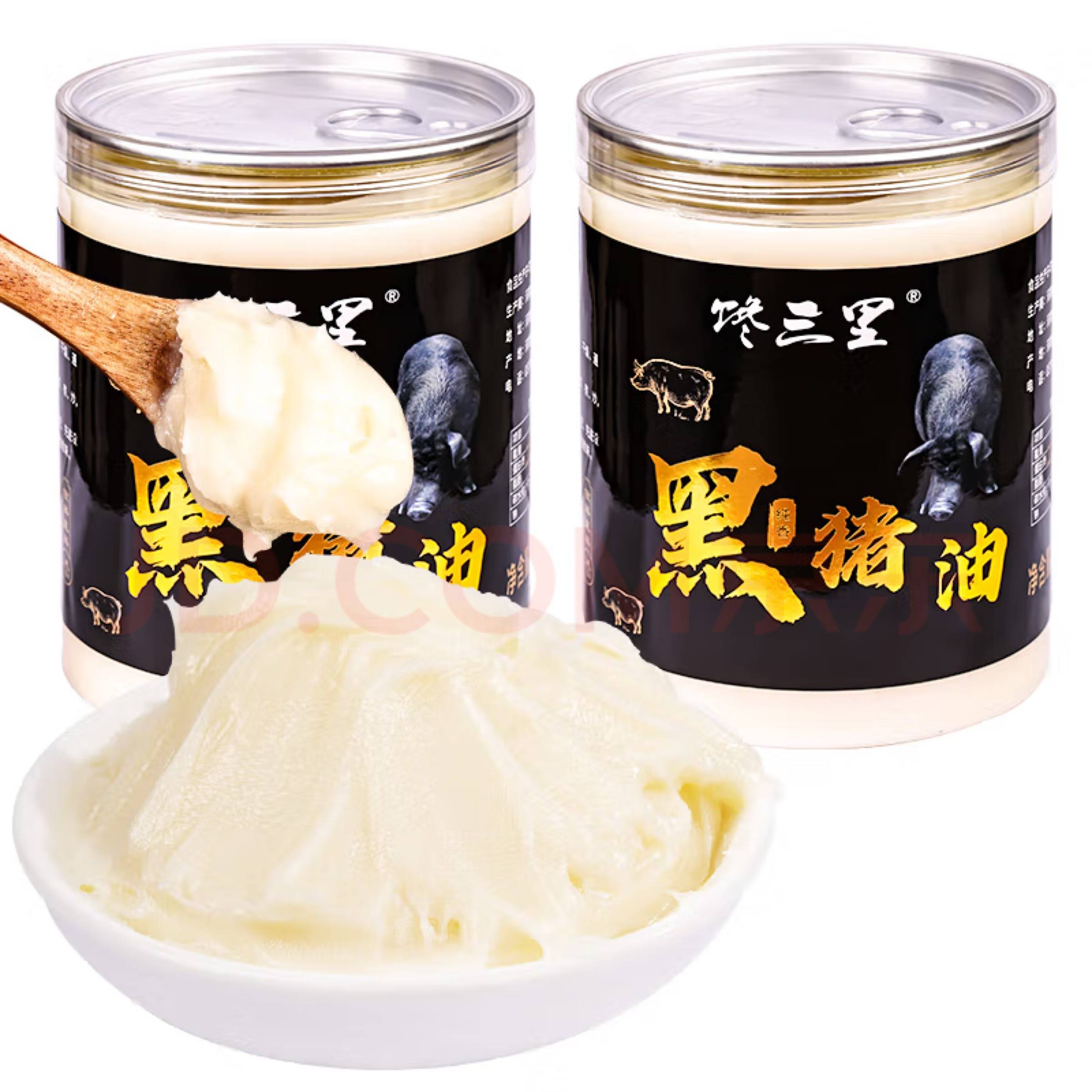 莲花纯食用黑猪油(2罐共1000克)特产古法熬制板油炒菜用起酥烘焙原料 黑猪油(500g*2罐)