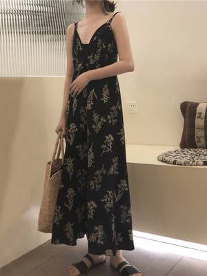 中长款连衣裙子女装2019夏季新款韩版百搭宽松碎花V领无袖吊带裙