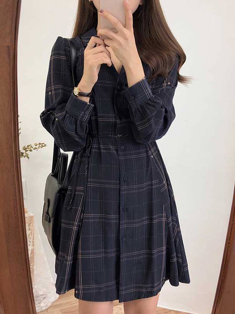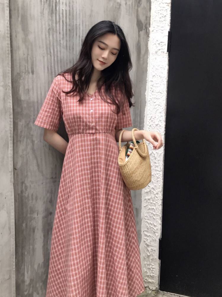短袖连衣裙女2019夏季新款小清新系带收腰中长裙裙子