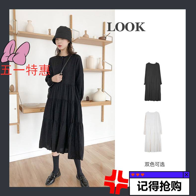 全国包邮长袖连衣裙新款早秋韩国黑裙宽松女装