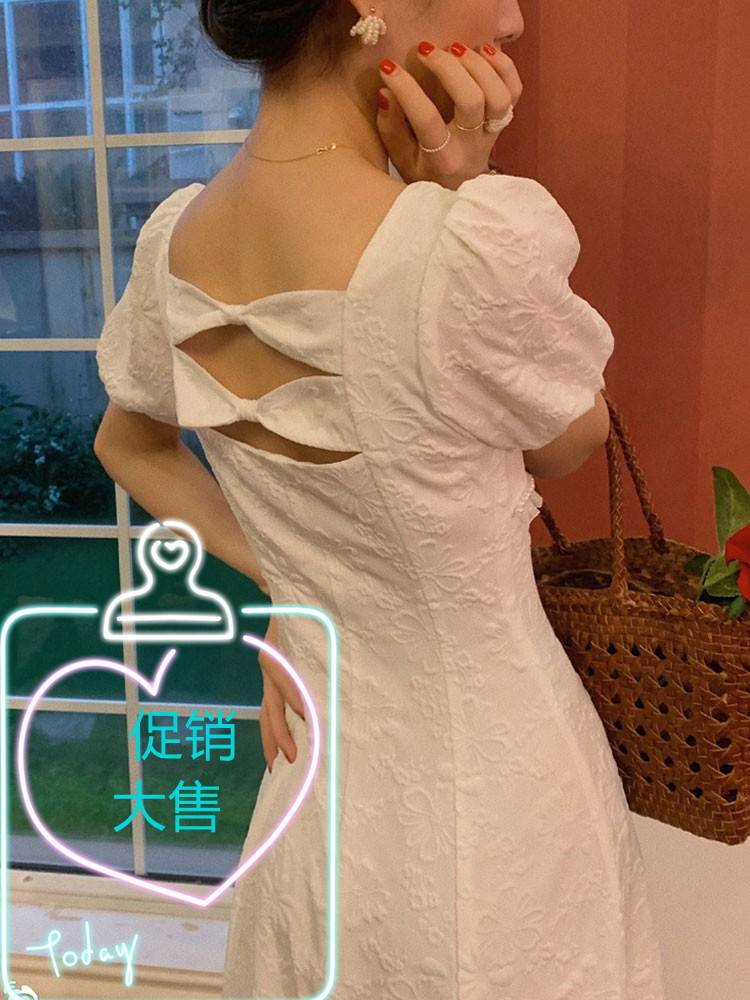 法式复古方领白色连衣裙夏季新款初恋甜美风长裙全国包邮