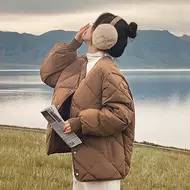 韩版羽绒服女上衣短款棒球服2022年冬新时尚百搭减龄显瘦菱格外套