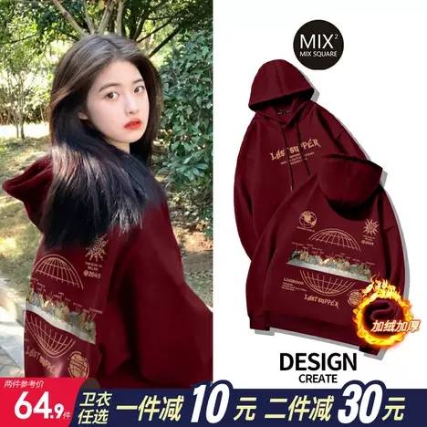 港风卫衣女ins潮秋冬季高级感百搭加绒宽松长袖男女同款情侣卫衣