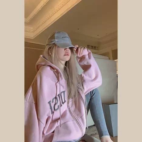 古连帽卫衣外套女2022新款春秋女装秋冬加绒加厚上衣