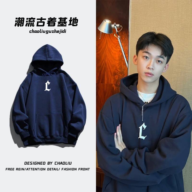 100%重磅纯棉美式复古oversize连帽卫衣男潮流ins秋冬情侣装外套