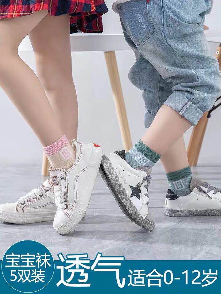 纯棉舒适透气儿童春夏袜五双装 19.00 已售:0件