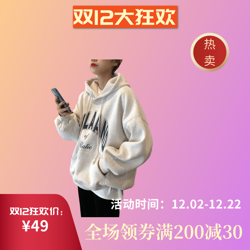 白色卫衣女秋冬2020新款加绒加厚连帽上衣韩版宽松学生慵懒风外套