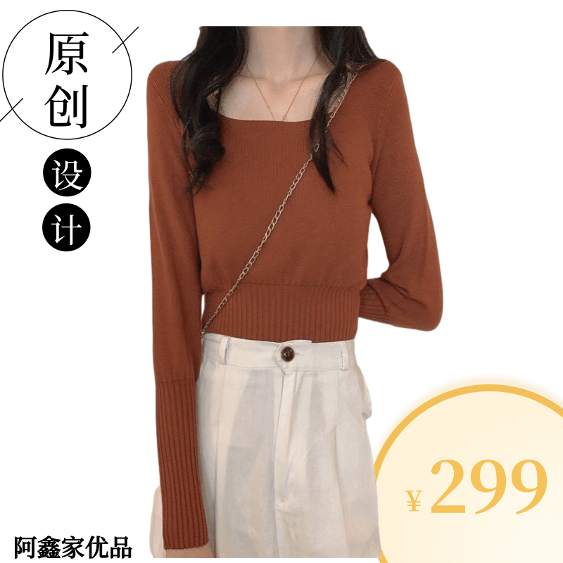 秋季韩版毛衣针织衫基础款修身显瘦露锁骨百搭方领内搭长袖上衣女