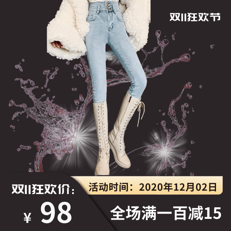浅色高腰牛仔裤女2020年秋冬新款弹力紧身加绒小脚裤修身显瘦长裤包邮