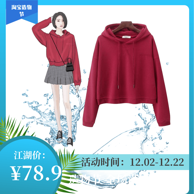 卫衣女宽松连帽新款春秋韩版百搭套头短款卫衣白色上衣外套包邮