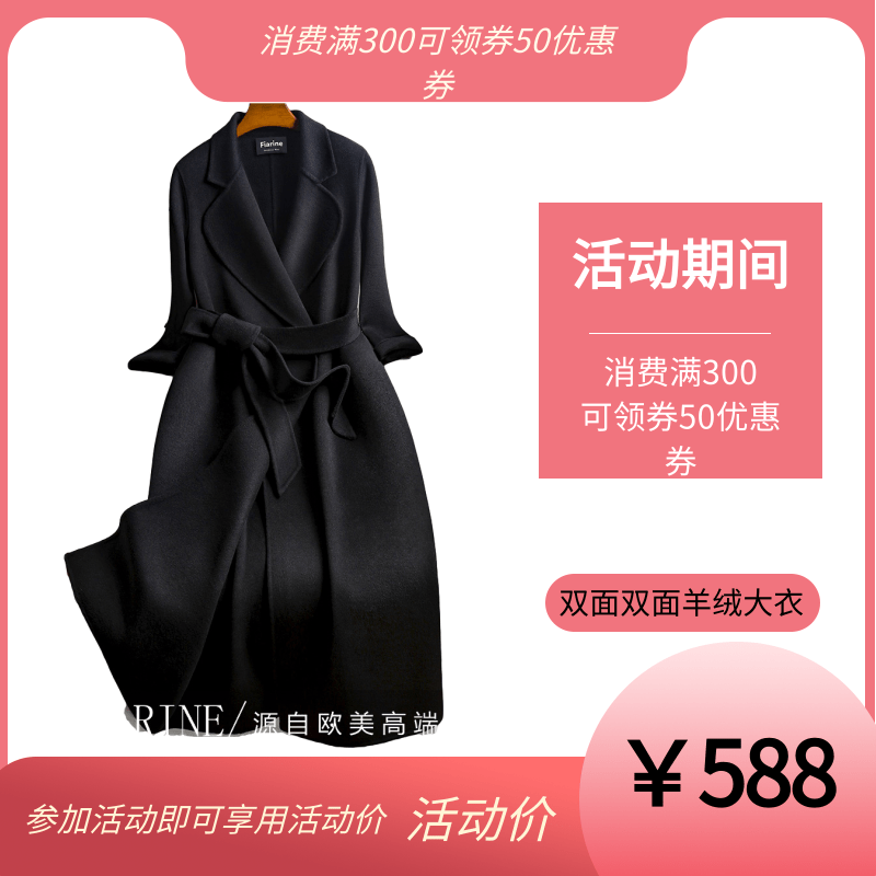 黑色双面羊绒大衣女长款过膝2020年秋冬新款修身加厚羊毛呢子外套包邮
