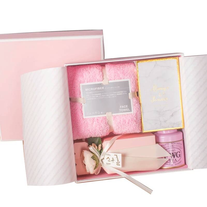 盒装糖果带毛巾粉色少女心 婚礼糖果生日礼物送女朋友情人节礼物