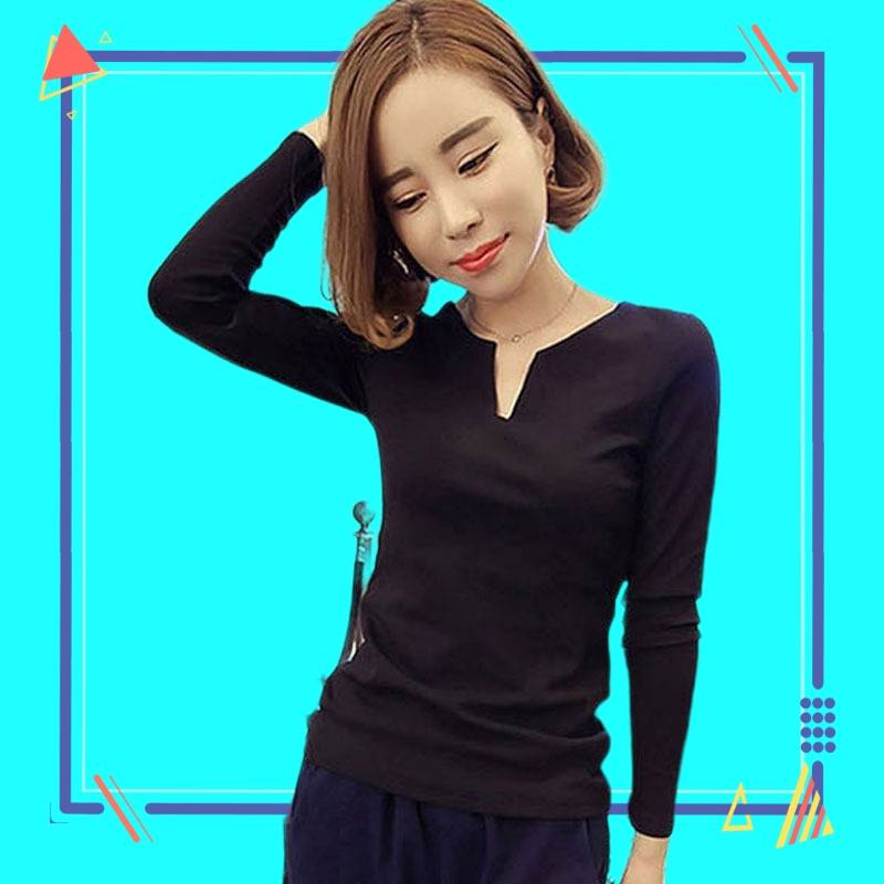 休闲小V领长袖t恤女装2019新款韩版内搭上衣服紧身薄款打底衫春秋