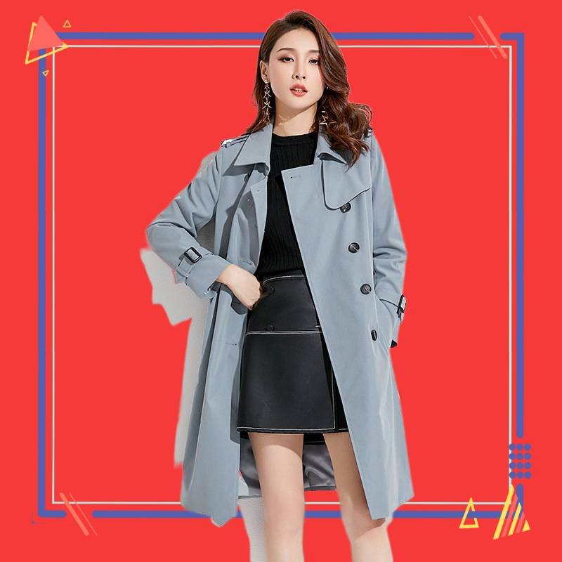 2019秋季新款品牌女装英伦气质纯色长袖西装领双排扣女式风衣外套