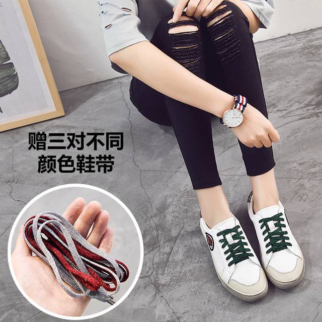 2018真皮新款百搭韩版小脏鞋亮片休闲学生板鞋单鞋