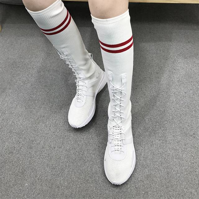 2018秋冬新款靴子弹力长筒靴学院风运动袜子靴女鞋休闲高筒靴学生