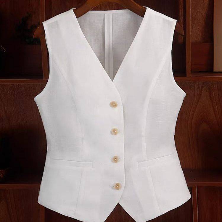亚麻老钱风法式短款西装背心马甲薄款2025新款上衣无袖坎肩外穿 59.90 已售:0件