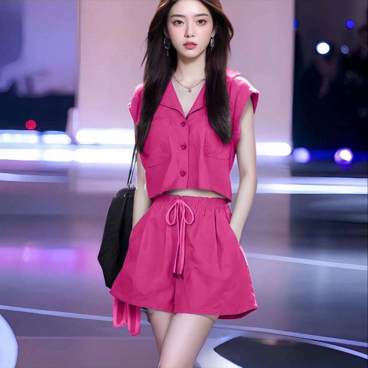 两件套2025夏季新款盐系小香风时尚套装女显瘦显高上衣小个子短裤 59.90 已售:0件