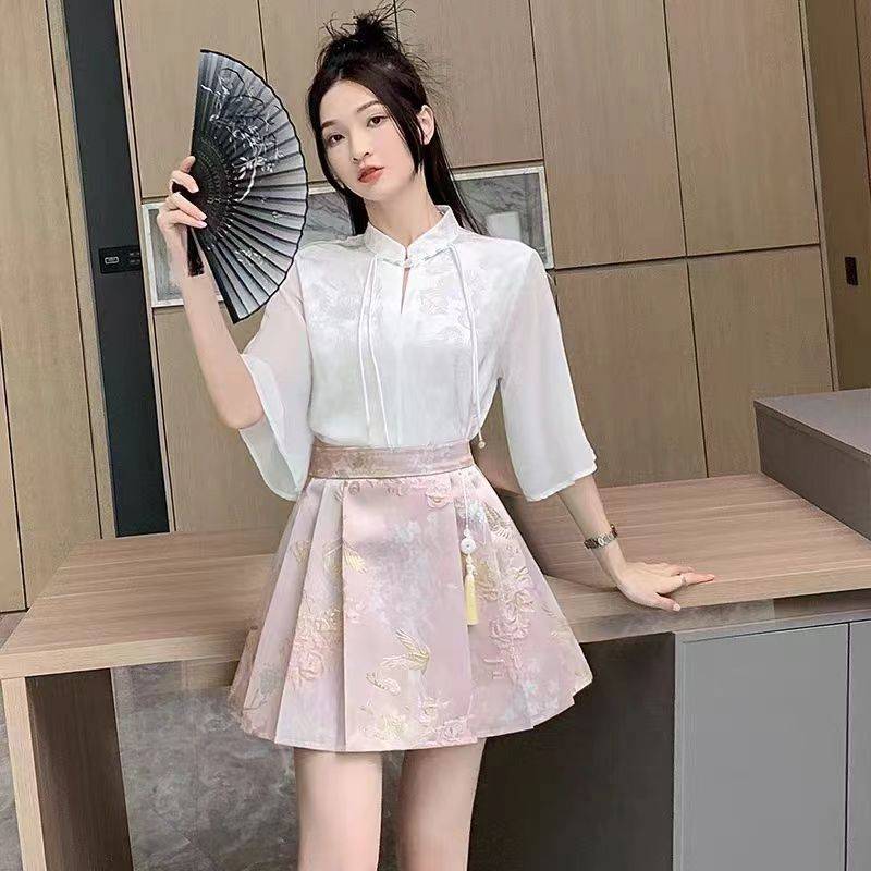 新中式汉服女马面裙2025新款复古高端学士服夏季国潮日常收腰套装 59.50 已售:0件