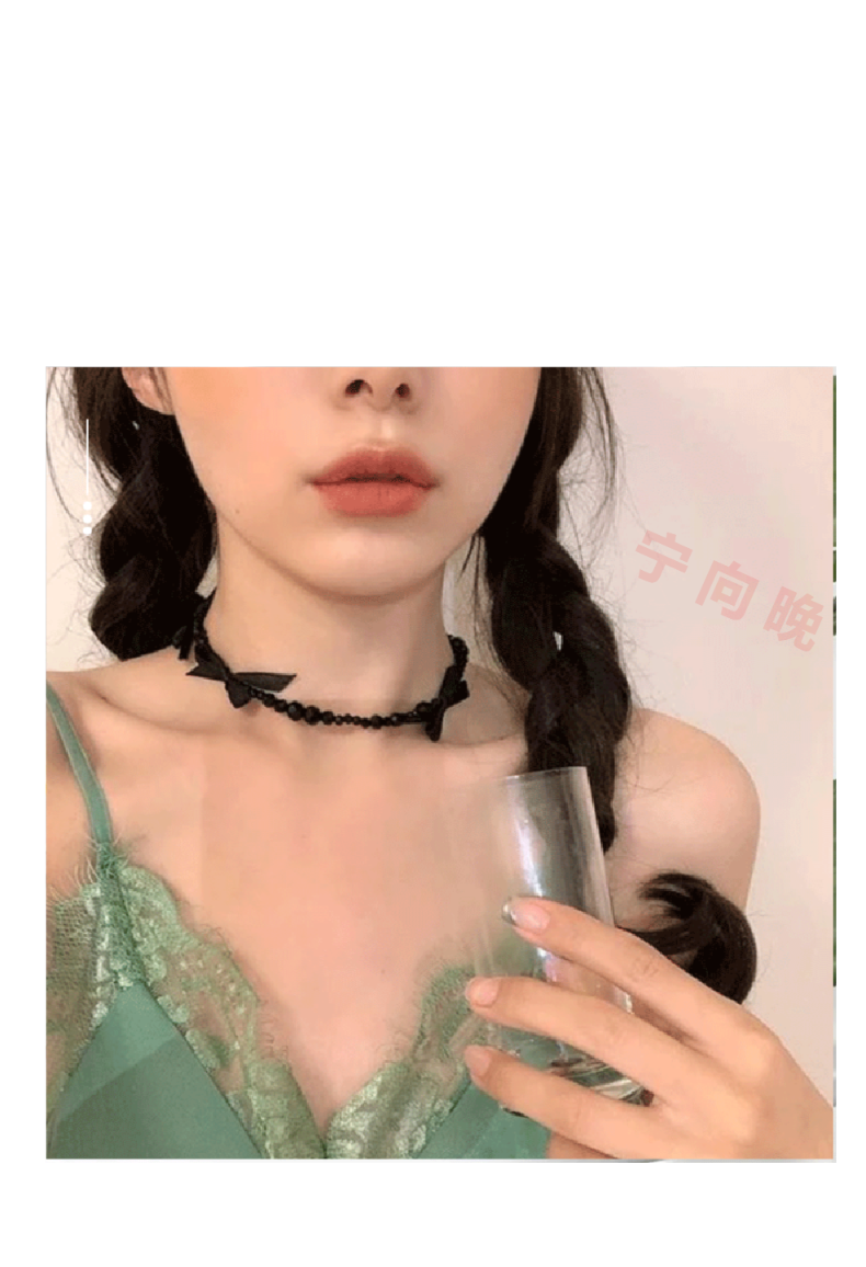 2021新款黑水晶轻奢小众蝴蝶结项链少女珍珠锁骨链choker配饰颈带