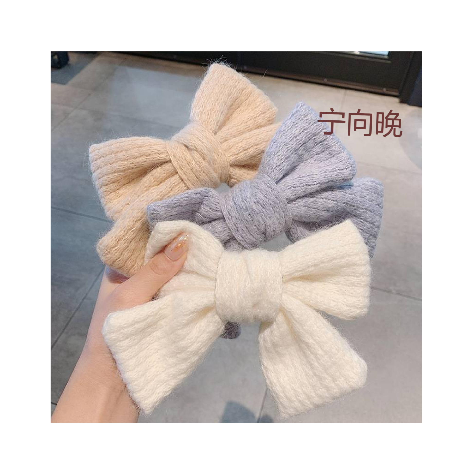 日韩秋冬新款大蝴蝶结可爱毛毛针织发夹网红森系甜美手工发卡