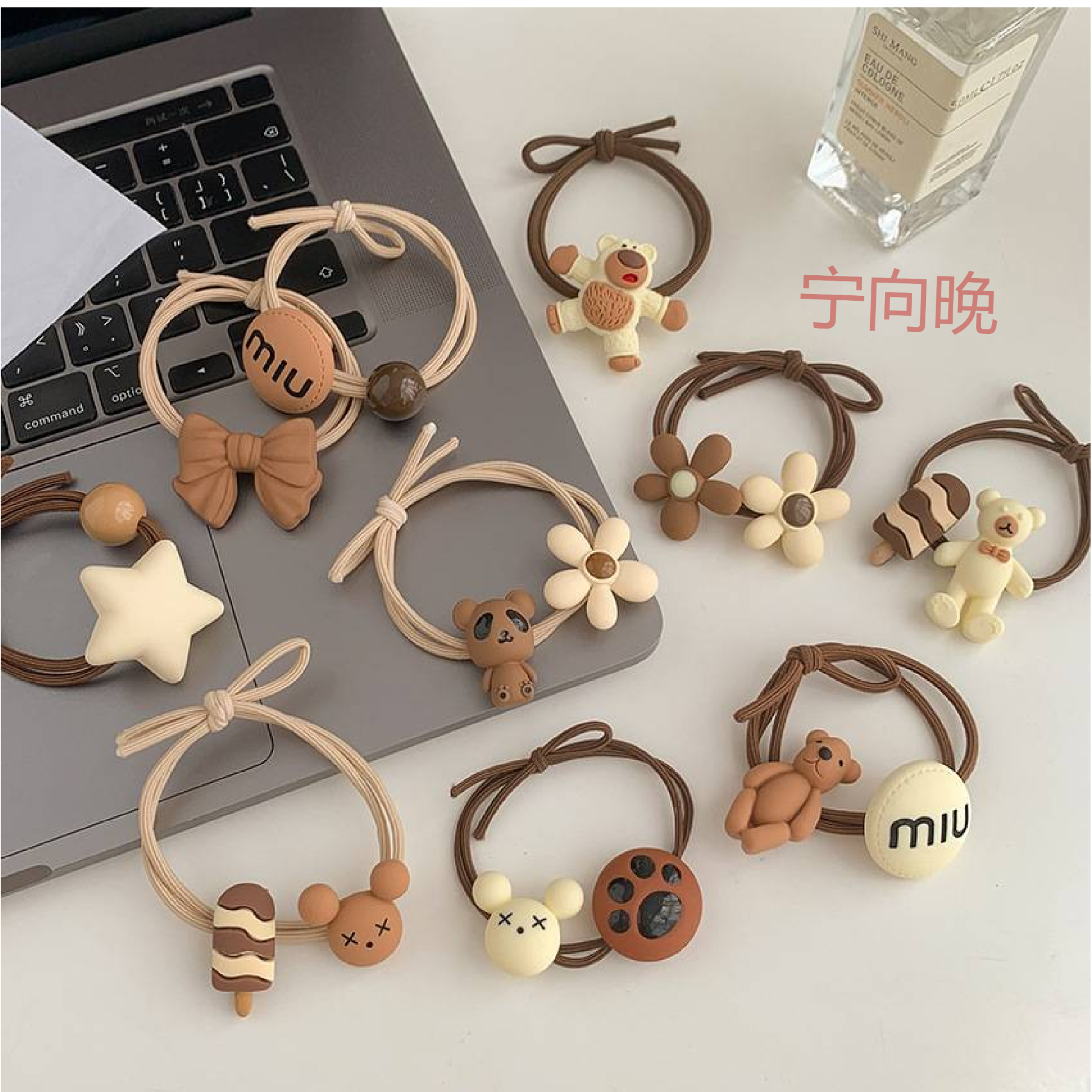 咖色系敲可爱小熊花朵打结发绳高弹力简约橡皮筋蝴蝶结头绳发圈