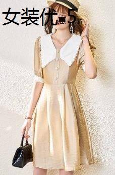 欧货时尚洋气娃娃领连衣裙女2021年夏季新款 气质收腰泡泡袖a字裙