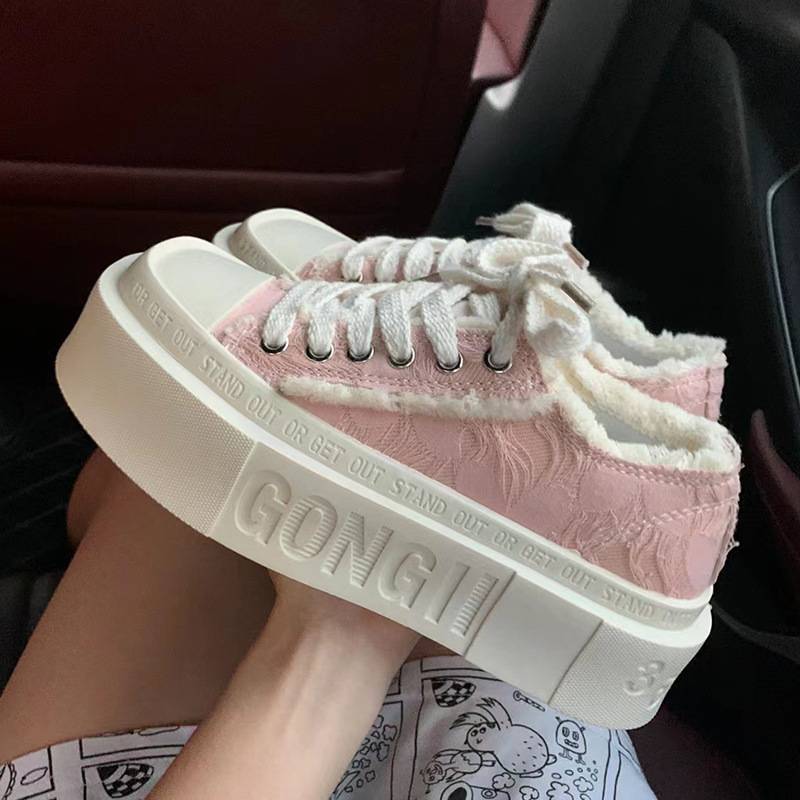 新款小白鞋休闲百搭厚底帆布鞋学生运动单鞋潮流方头女帆布鞋