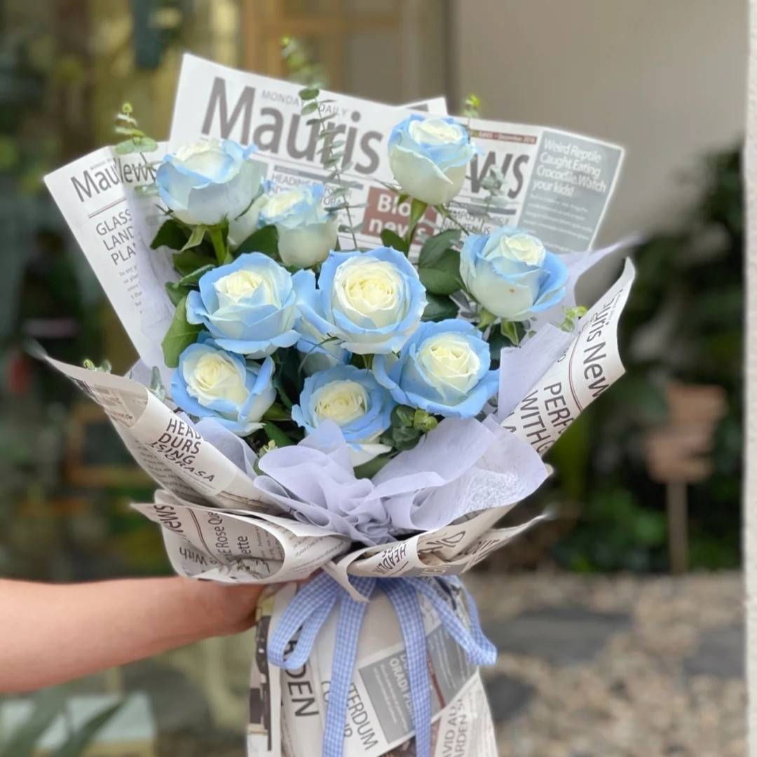 网红碎冰蓝玫瑰真花昆明基地稀有香槟睡莲鲜花速递插花花束摆件