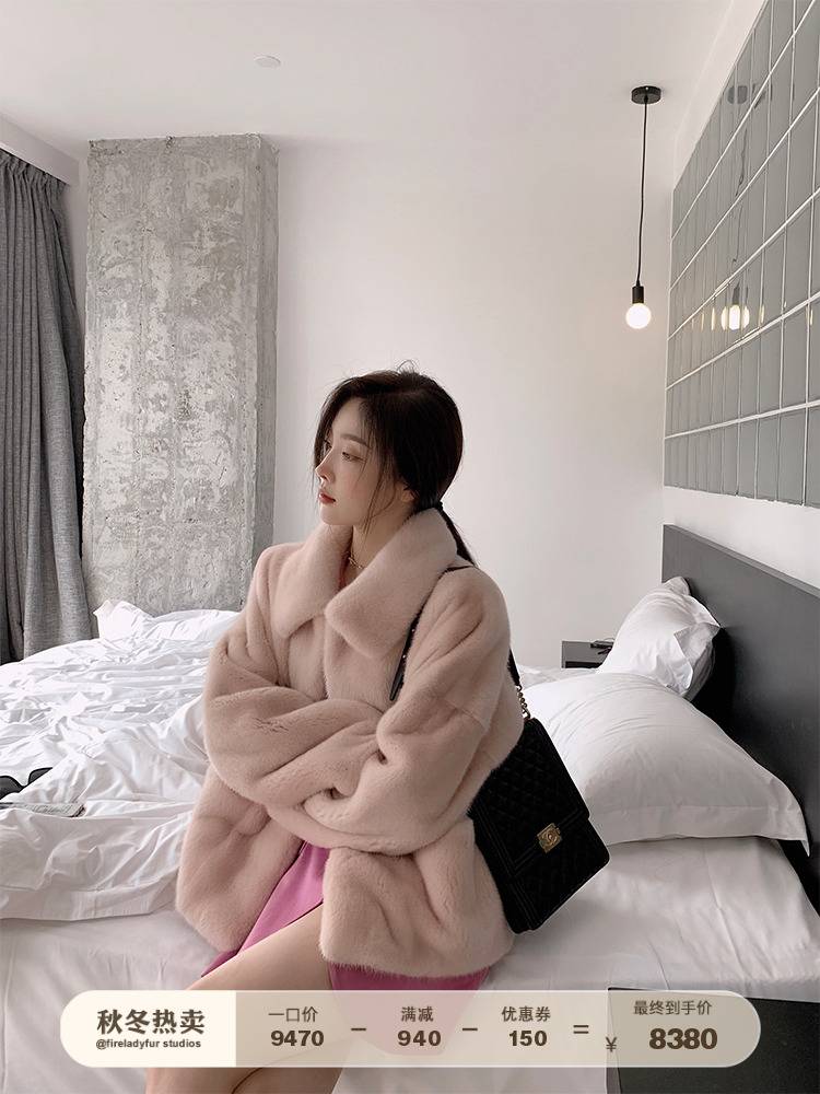 付智恩 芭莎貂 进口天鹅绒水貂整貂皮草外套女衬衫貂皮大衣2020冬