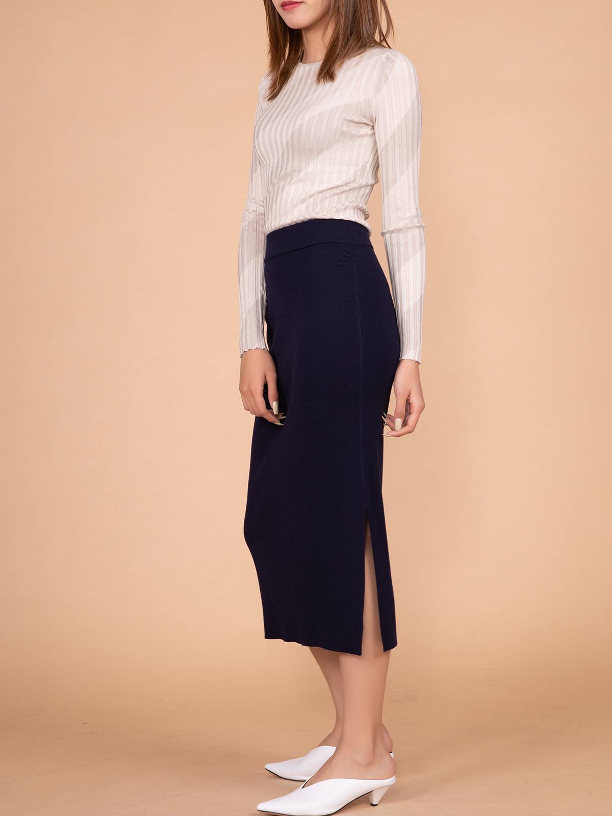 TH一侧开衩一步裙纯色女士半身裙秋冬包臀裙羊毛针织裙