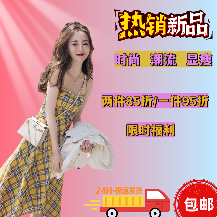 格子吊带裙2019新款chic连衣裙女夏季露肩收腰显瘦裙子