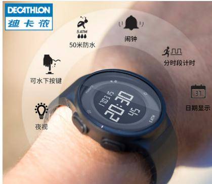 迪卡侬运动手表男W500智能中学生电子表女简约游泳防水多功能RUNA