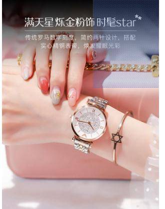 2019新款满天星手表女士时尚潮流简约气质防水学生水钻女表ins风