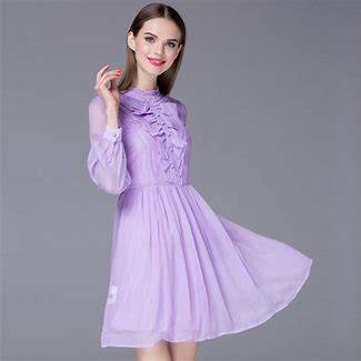 夏装雪纺超仙轻薄舒适时尚优雅蕾丝收腰显瘦轻熟风温柔紫色连衣裙