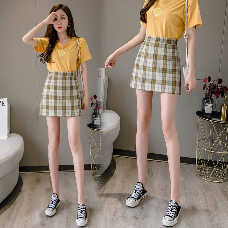 夏季热款小个子气质减龄学院风时尚收腰显瘦短款时尚格子半身裙