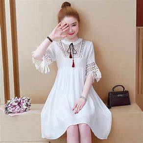 2022年时尚国潮民族风高腰显腿长温柔简约日常中长袖镂空纯白连衣裙