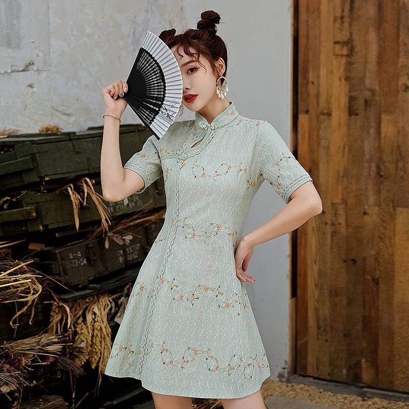 减龄简约时尚俏皮收腰显瘦气质新款中国复古风旗袍改良版连衣裙