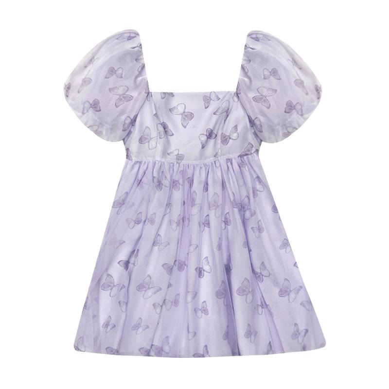 DIGM法式连衣裙女2022初夏新款方领小众甜美蝴蝶网纱蓬蓬短裙156