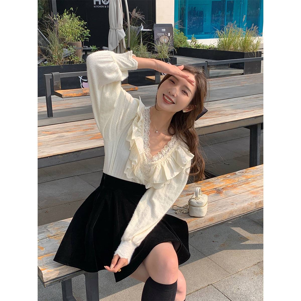 诠释美 NEW OPEN韩版黑色丝绒高腰显瘦短款a字半身裙女春季95103