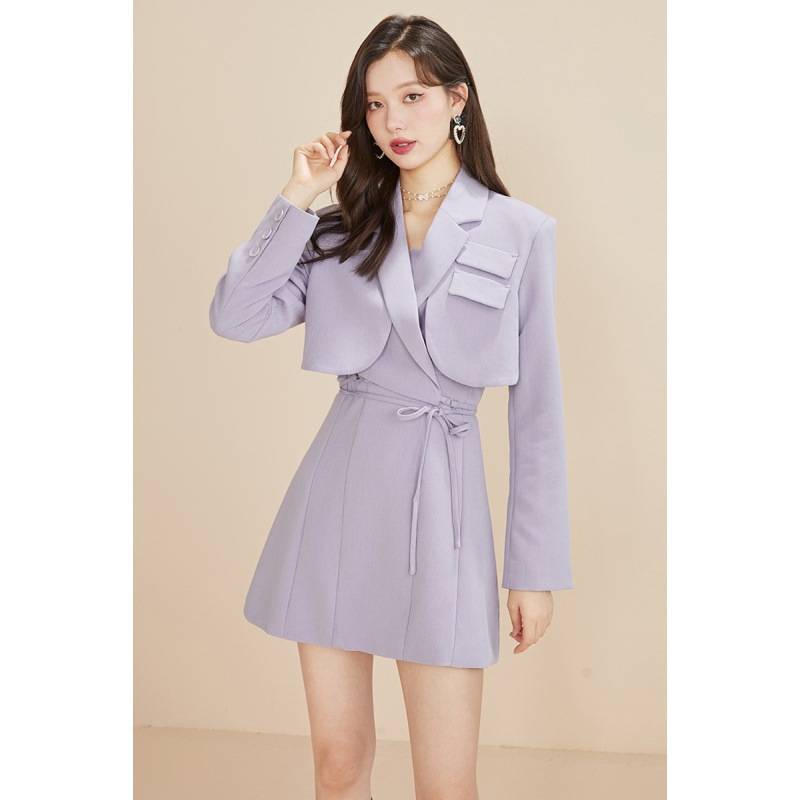 凡兔2022春季新款西装女外套收腰绑带设计短款上衣搭配套装