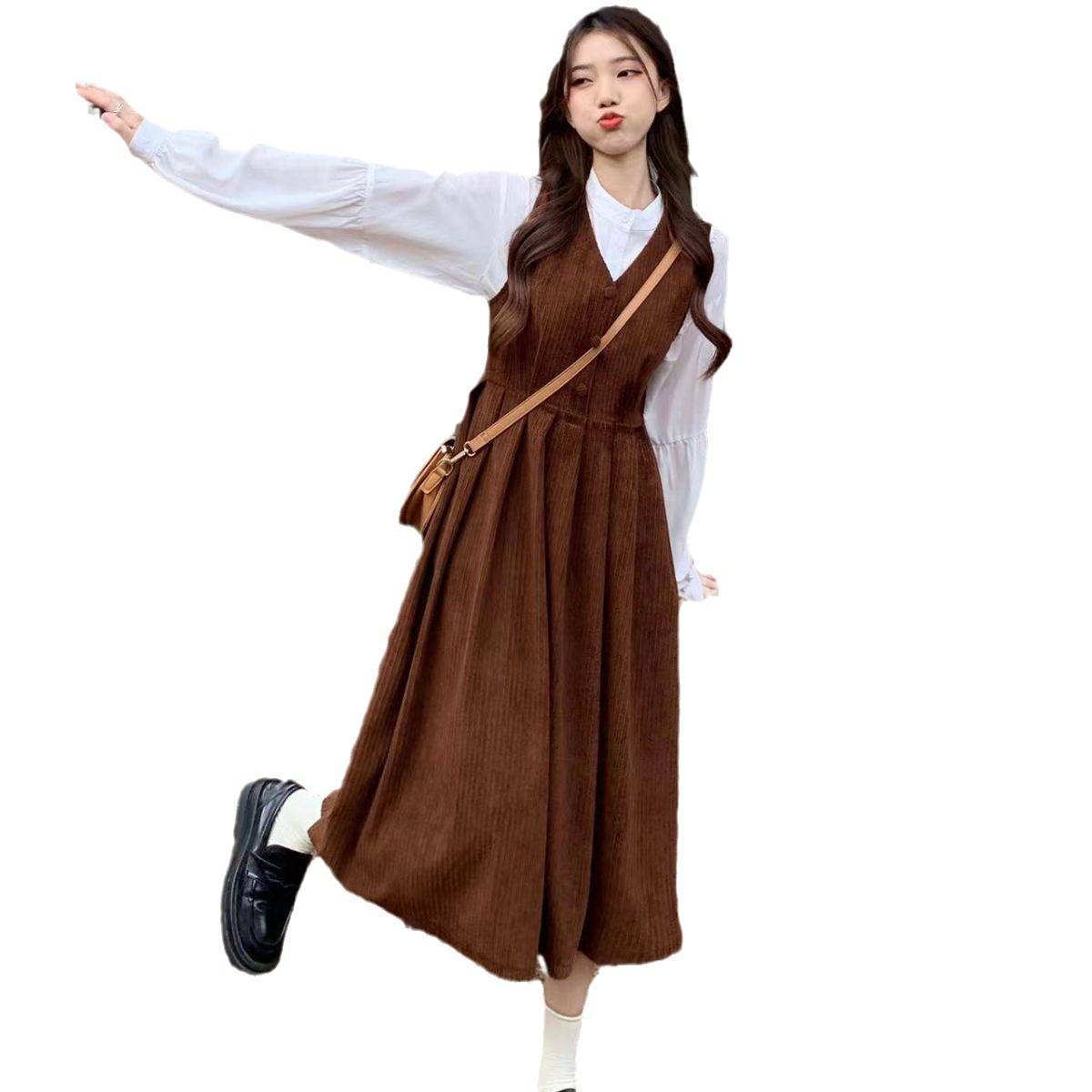 初秋季连衣裙背带两件套日系学院风套装裙子女秋冬2023年新款长裙